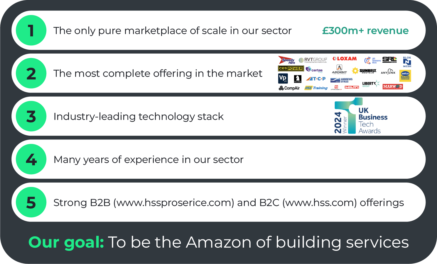 Uniquely positioned in the building services market, we are a pioneering B2B focussed marketplace following in the footsteps of proven B2C models